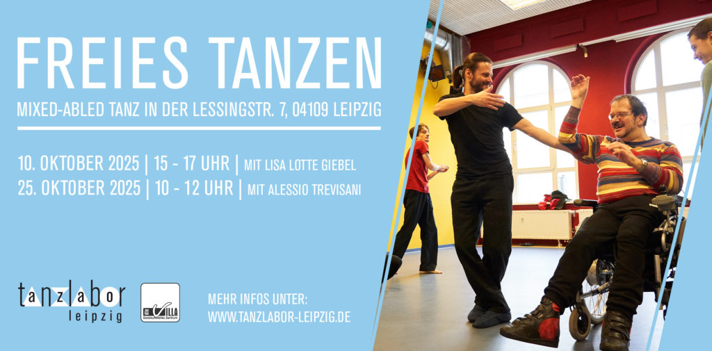 auf den Seiten vom Tanzlabor Leipzig. Das Tanzlabor Leipzig ist eine offene, mixed-abled Company. Zu ihr gehören Tanzfreunde, die seit 16 Jahren mit dem Tanzlabor tanzen und viele Tanzfreunde , die einige Zeit mit uns tanzen und dann weitergehen.