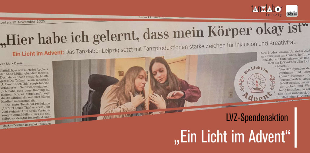 - LVZ-SPENDENAKTION: Wir sind in diesem Jahr Teil der LVZ-Spendenaktion „Ein Licht im Advent“. Jede Spende hilft uns, damit Tanz für ALLE möglich bleibt.
