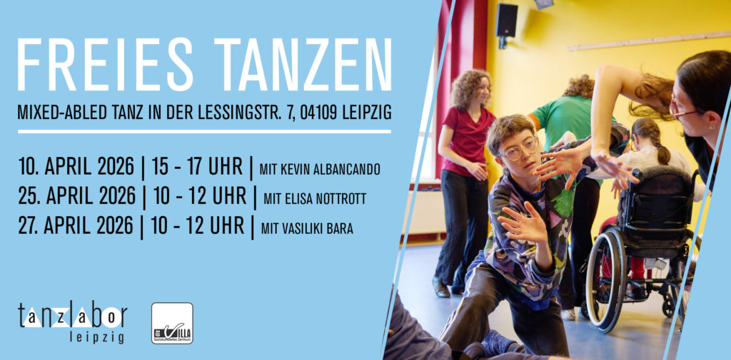 auf den Seiten vom Tanzlabor Leipzig. Das Tanzlabor Leipzig ist eine offene, mixed-abled Company. Zu ihr gehören Tanzfreunde, die seit 17 Jahren mit dem Tanzlabor tanzen und viele Tanzfreunde , die einige Zeit mit uns tanzen und dann weitergehen.