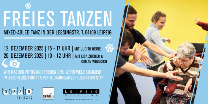 *** Nach dem Freien Tanzen (ca. ab 12:30 Uhr) am 20.12.25 startet unser TANZLABOR-JAHRESABSCHLUSS. Gemeinsam mit euch wollen wir das Jahr ausklingen lassen. Besondere Highlights sind zwei Kurzperformances und die Videopremiere unseres Projektes “Bewegung im Wandel”. ***